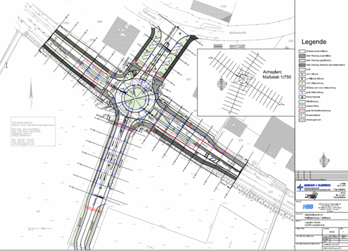 - Planung Umplanung des Kreuzungsbereiches auf der B227 im Bereich der Zufahrt des Erschließungsgebietes B-Plan 50 unter Einbindung eines Kreisverkehrs und Umgestaltung der Harzstraße